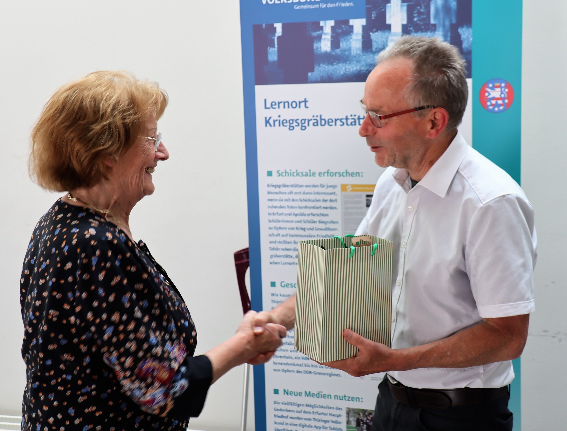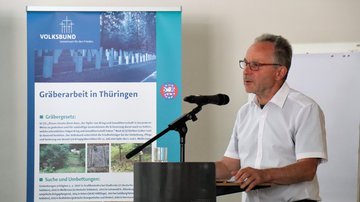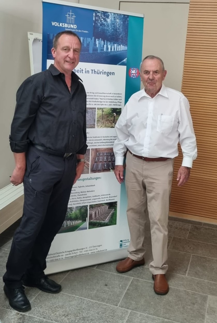 Thüringen war der erste Landesverband des Volksbundes in den neuen Bundesländern, welcher 1991 gegründet wurde und im vergangenen Jahr sein 30-jähriges Jubiläum begehen konnte. Aus diesem Anlass wurde die 10 Jahre alte Ausstellung des LV Thüringen aktualisiert, an das neue Corporate Design des Volksbundes angepasst, um 6 Rollups erweitert und bei der Versammlung erstmals präsentiert. Für die Realisierung des Projektes bedanken wir uns für die finanzielle Förderung bei der Thüringer Staatskanzlei sowie der Stiftung Gedenken und Frieden.