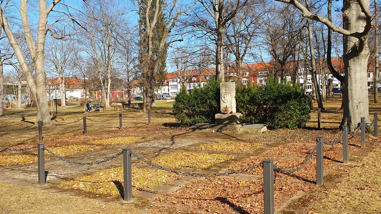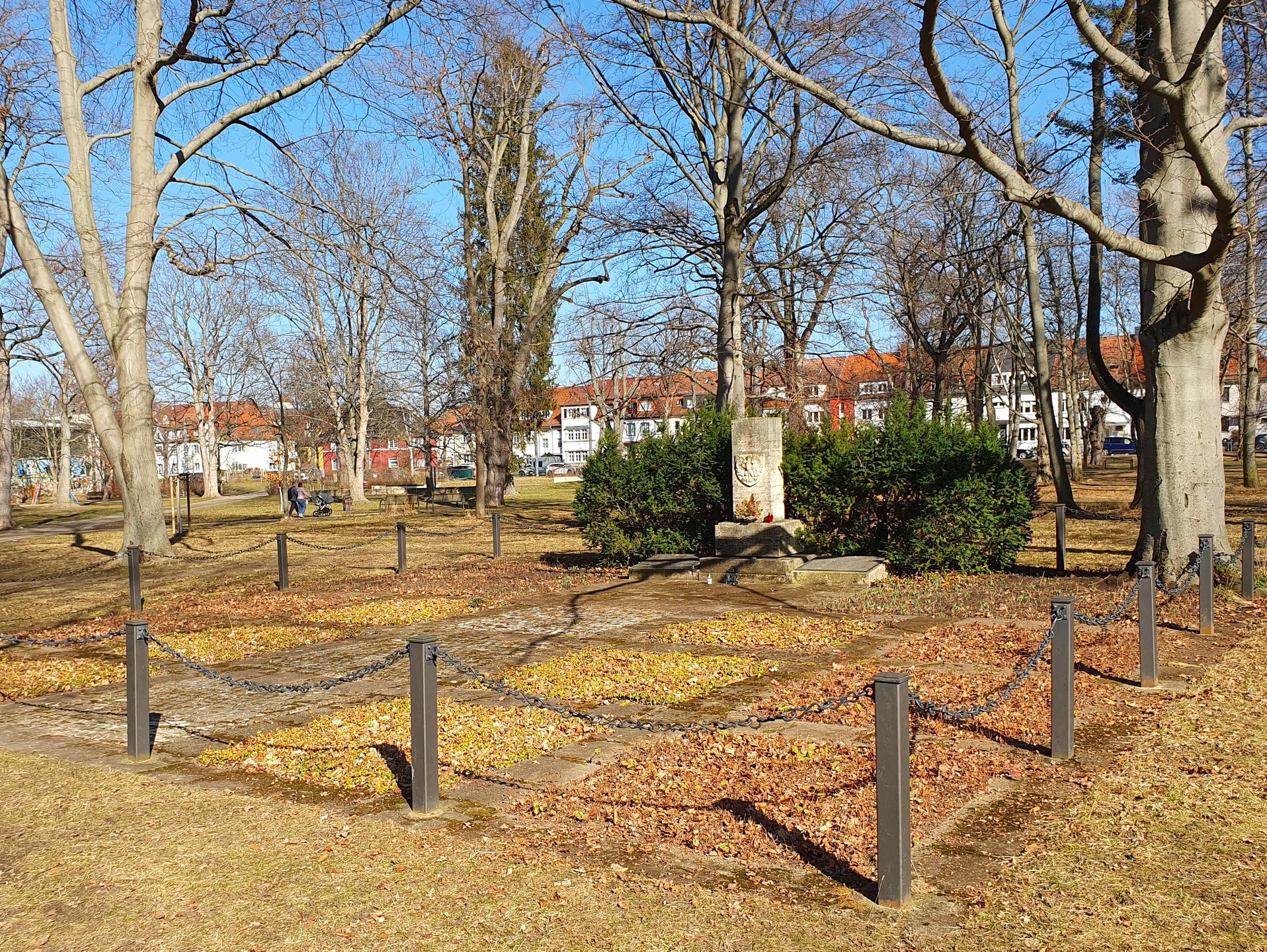 Blick auf das Grabfeld für polnische Zwangsarbeiterinnen und Zwangsarbeiter im Erfurter Südpark