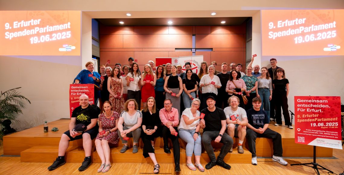 Die Bürgerstiftung Erfurt würdigt damit das Engagement von Vereinen, die sich in besonderem Maße für sozialen Zusammenhalt und Demokratie einsetzen. Beim 9. Erfurter Spendenparlament konnten 26 Projekte mit insgesamt 34.033 Euro unterstützt werden.